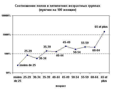 65 лет) на 1 женщину приходится более 10 мужчин.